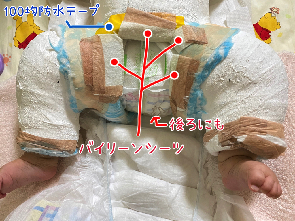 この間はギプス端部の保護だったり、おむつ替えやからだ拭きをどうやるかなど試行錯誤していました。